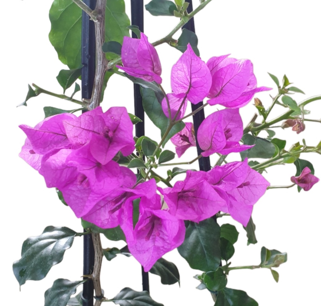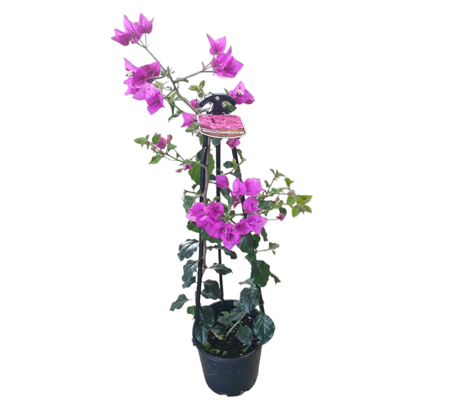 A free-flowering, fast growing, upright climber with showy, dark purple flower bracts and deep green foliage.