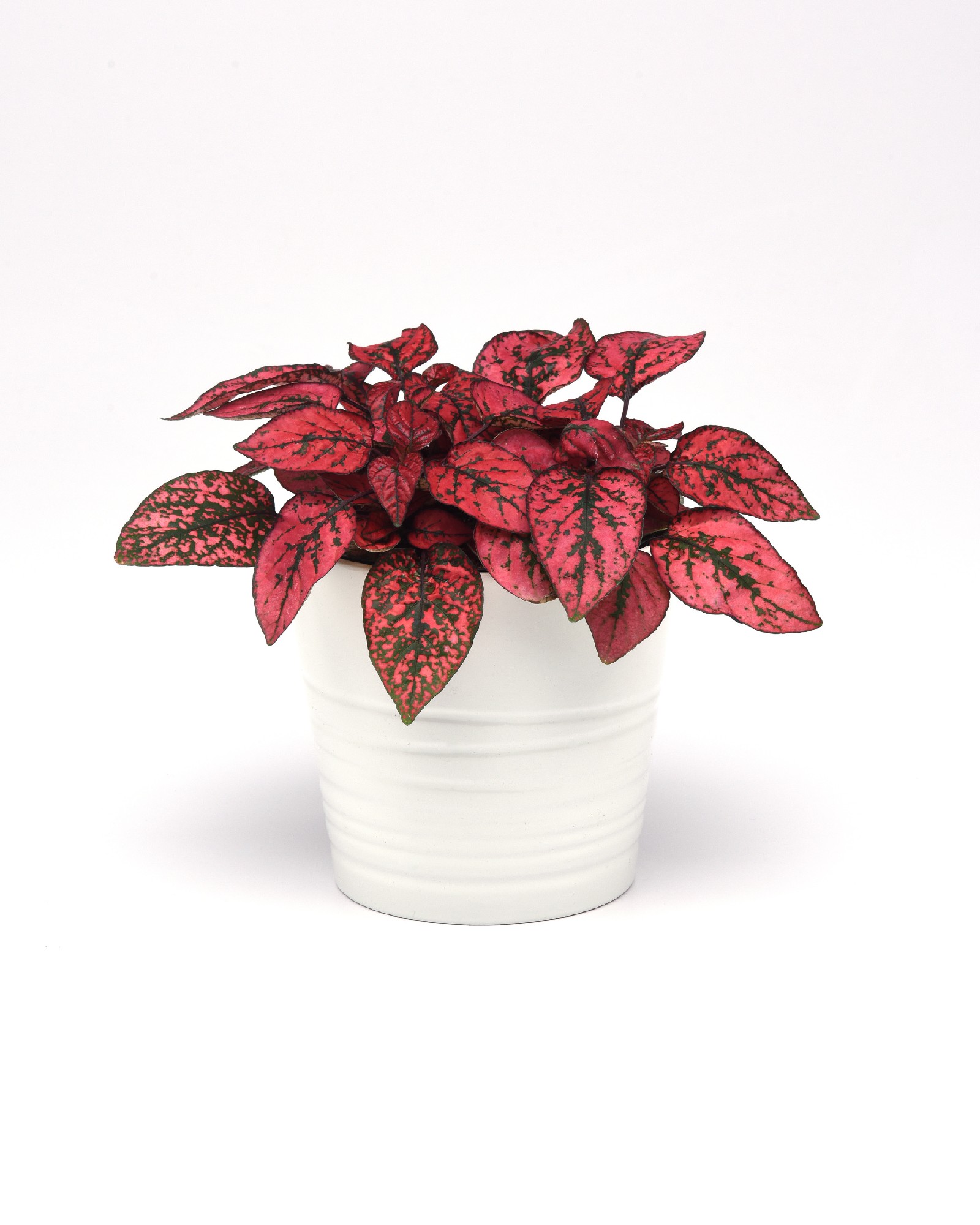 Shade house or indoor, this little colourful plant is certainly a statement. It loves the heat of summer, and will quickly flower with little lilac flowers. This makes the leaves smaller. If you would rather the big lush leaves, cut off the flower spikes as they start.