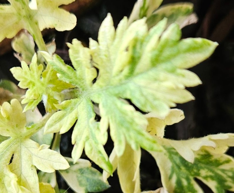 Tough perennial with attractive variegated foliage and tiny whit flowers