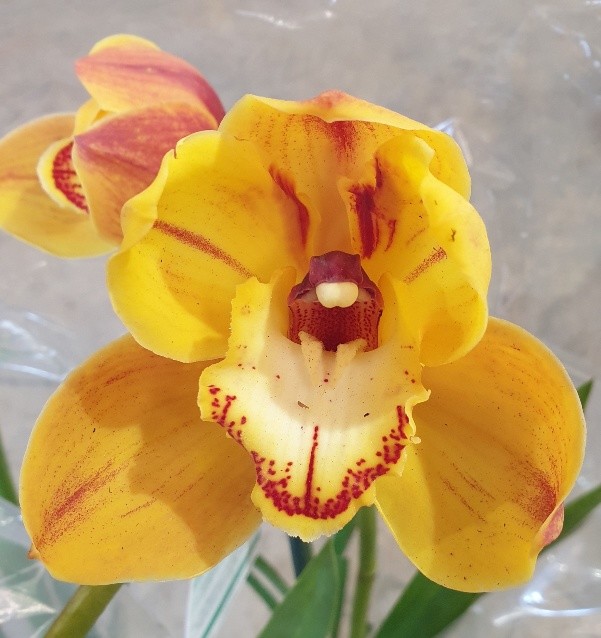 ORCHID CYMBIDIUM 1 SPIKE GOLD RED LIP 14