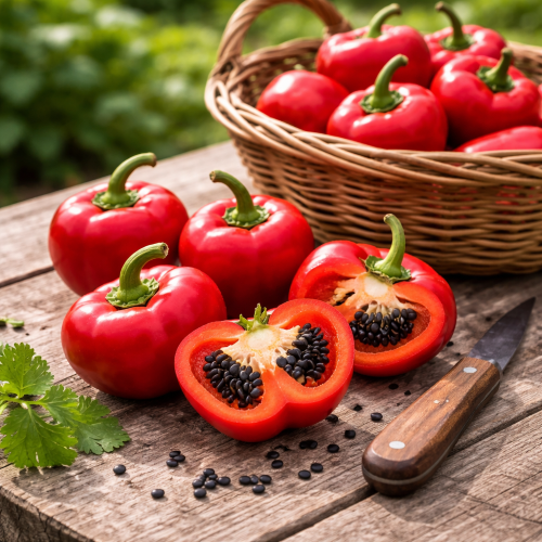 Producing medium to large, apple-shaped chillies, this variety delivers a crisp texture and medium to hot heat level, perfect for sauces, stuffing, and fresh use. Its vigorous, shrubby growth habit makes it ideal for pots, garden beds, or as a feature edible plant.