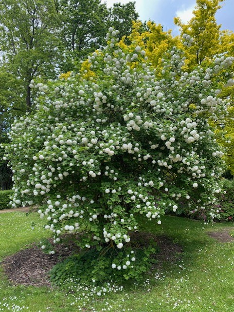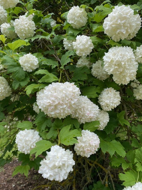A magnificent deciduous shrub to 3m tall. The Spring growth quickly extends into beautiful large, white pom pom style flowers. They cover the shrub from October to December. The show does not end there. In mid Autumn the "maple-like" leaves change colour into rich reds before falling off in Winter.